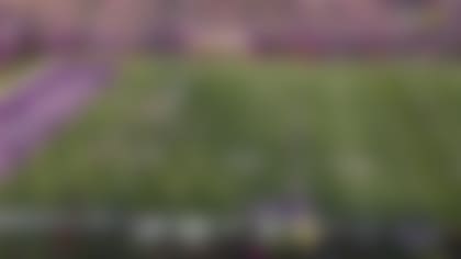 Minnesota Vikings wide receiver K.J. Osborn sits down in zone coverage for a 9-yard touchdown catch.